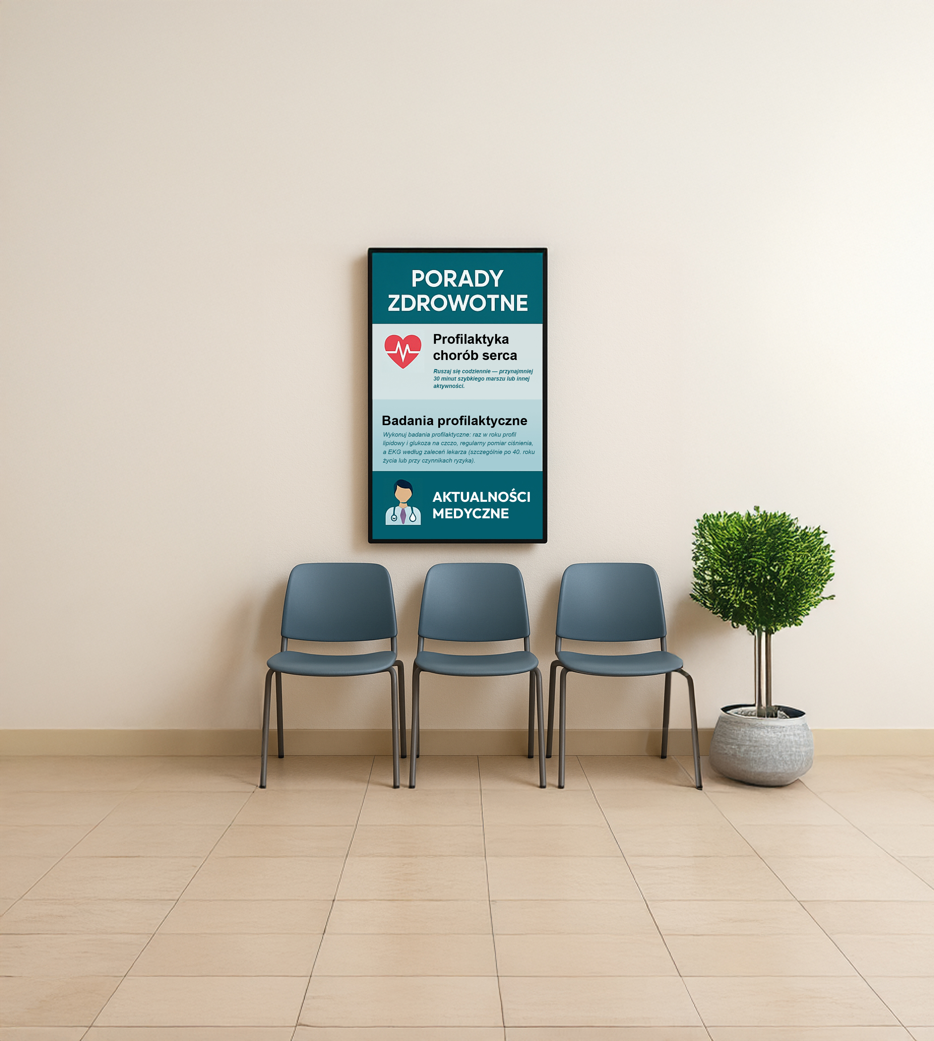 Z nami każda poczekalnia staje się przestrzenią, w której pacjenci zdobywają wiedzę, zwiększają świadomość zdrowotną i podejmują lepsze decyzje dotyczące swojego zdrowia.